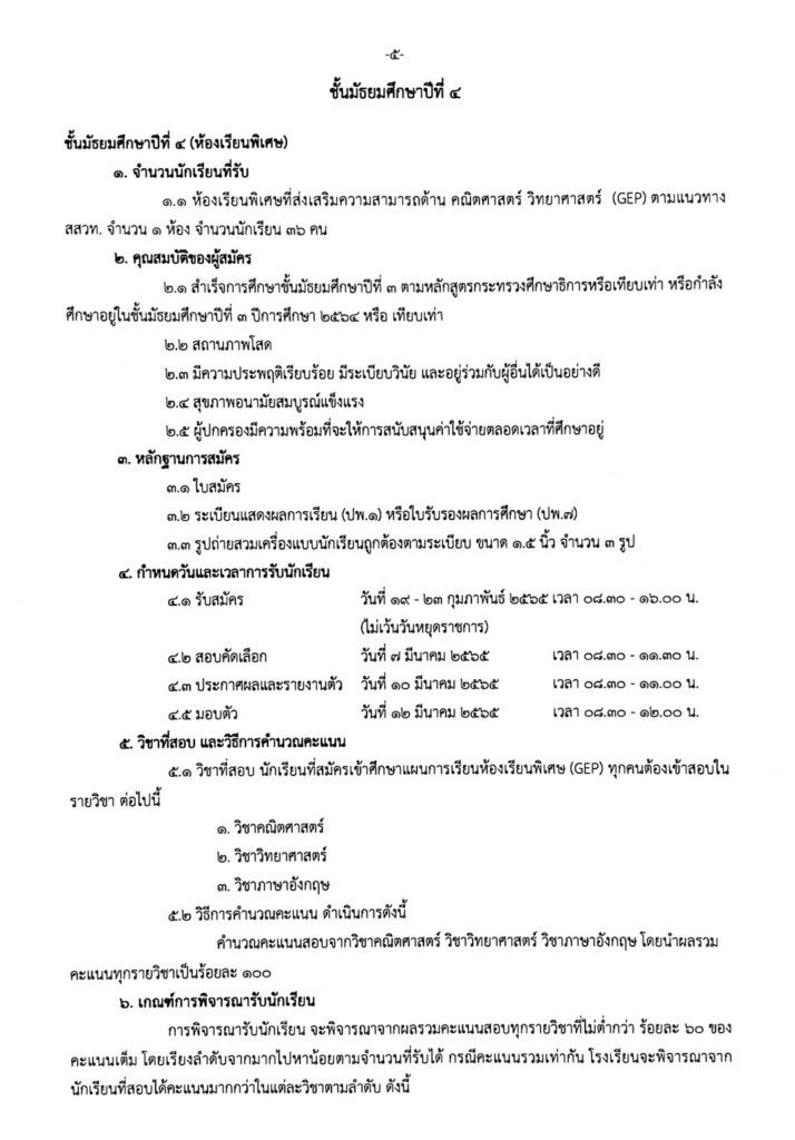 5.1 วิชาที่สอบ นักเรียนที่สมัครเข้าศึกษาแผนการเรียนห้องเรียนพิเศษ (GEP) ทุกคนต้องเข้าสอบใน
