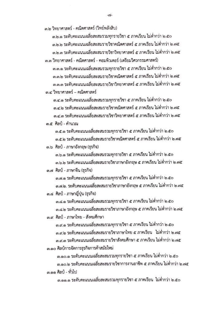 – ระดับคะแนนเฉลี่ยสะสมรวมทุกรายวิชา 5 ภาคเรียน ไม่ต่ำกว่า 2.50