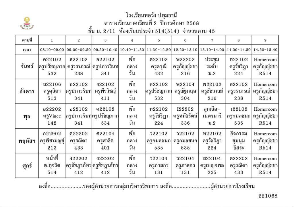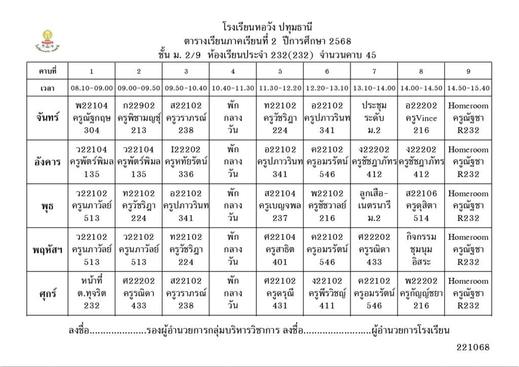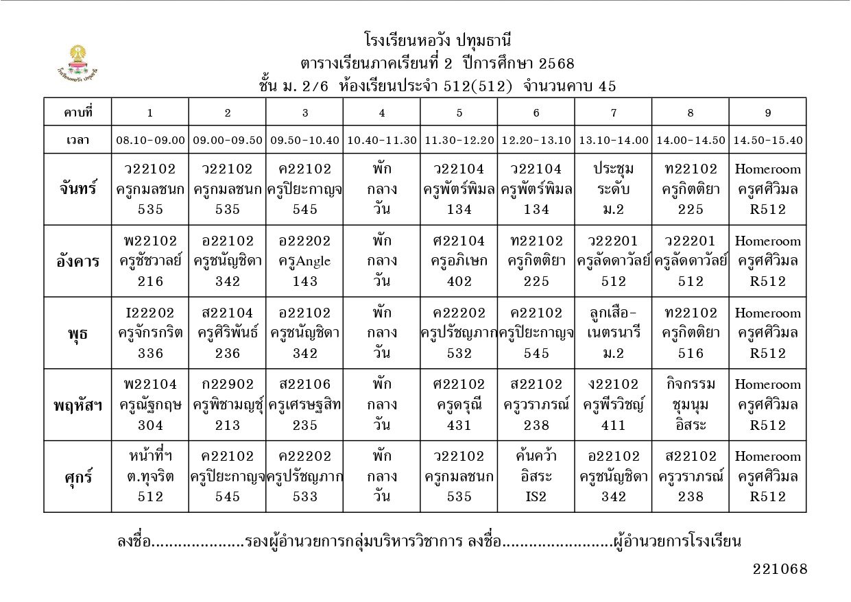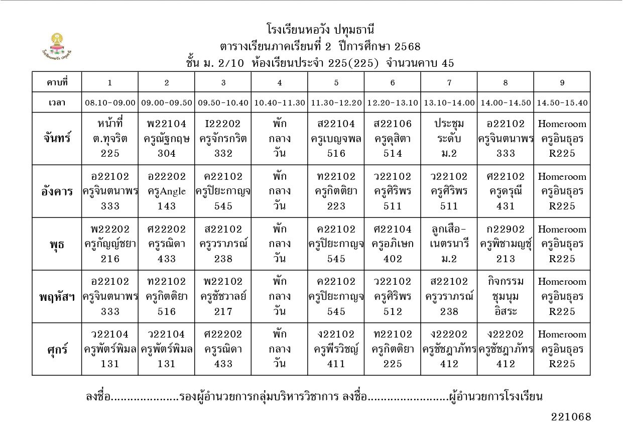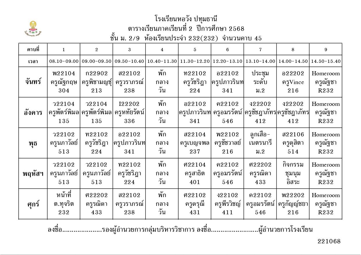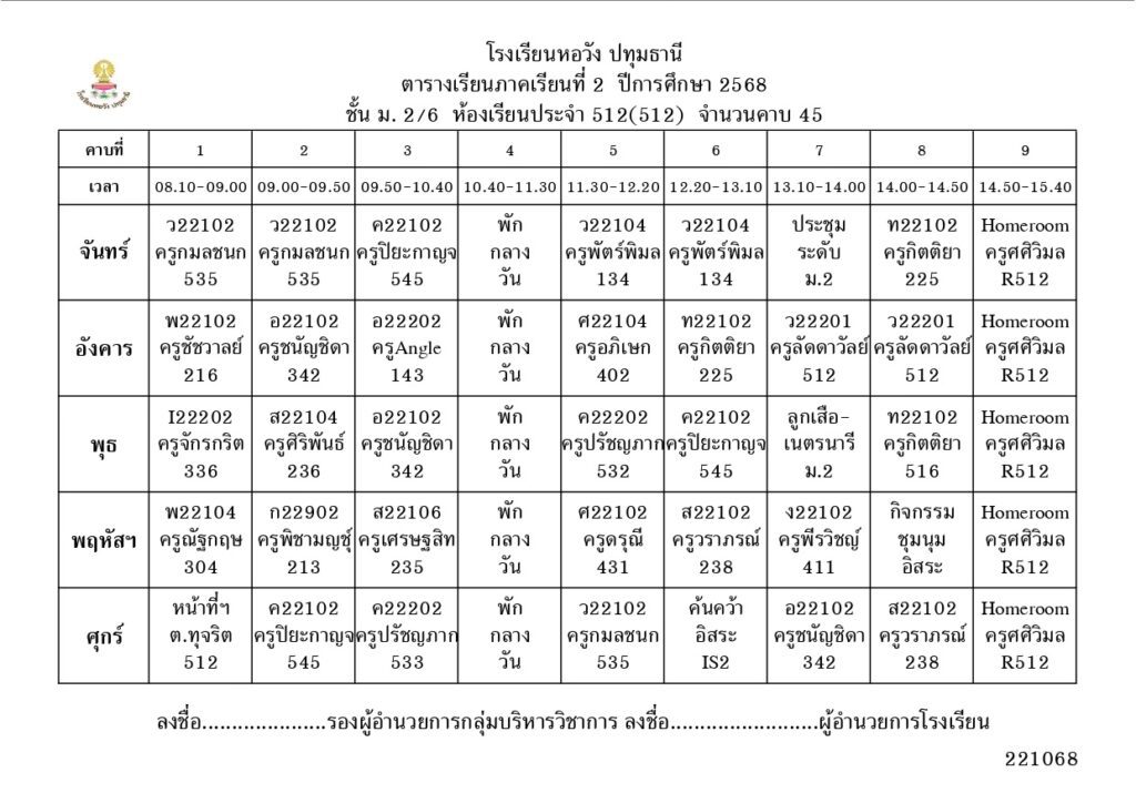 ภาคเรียนที่ 2 ปีการศึกษา 2568