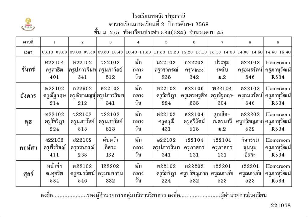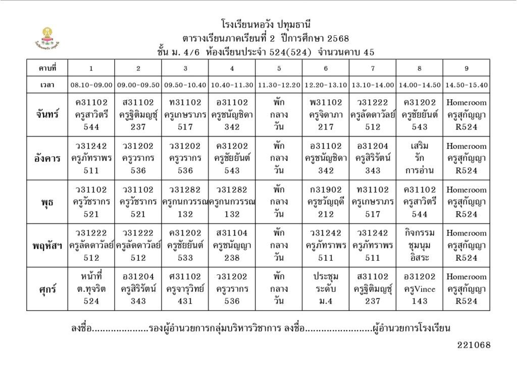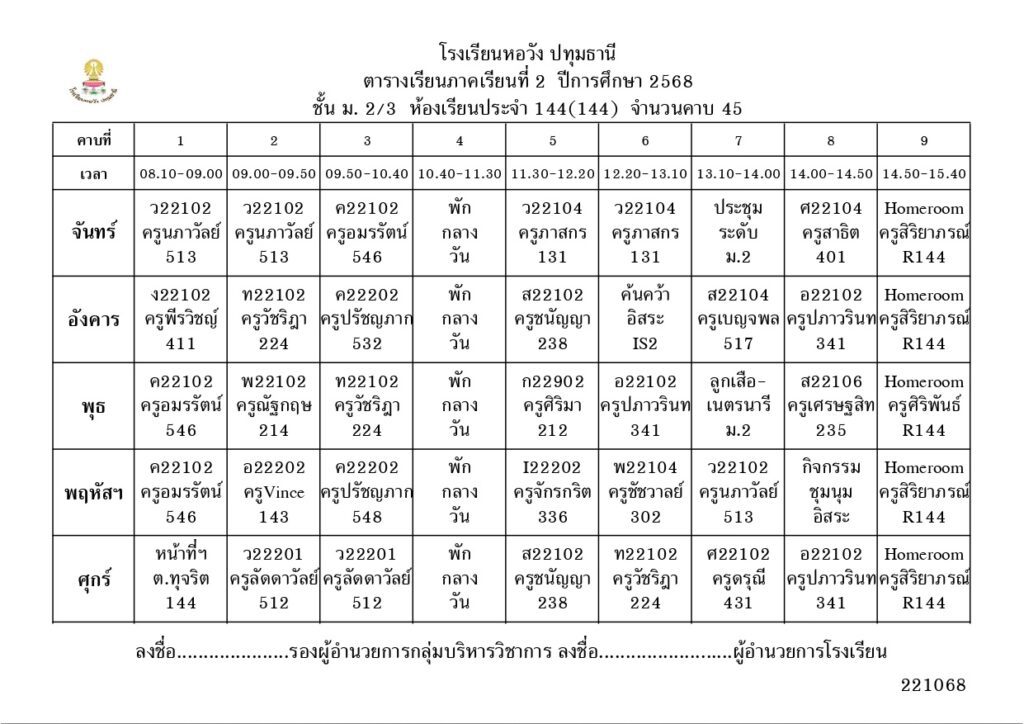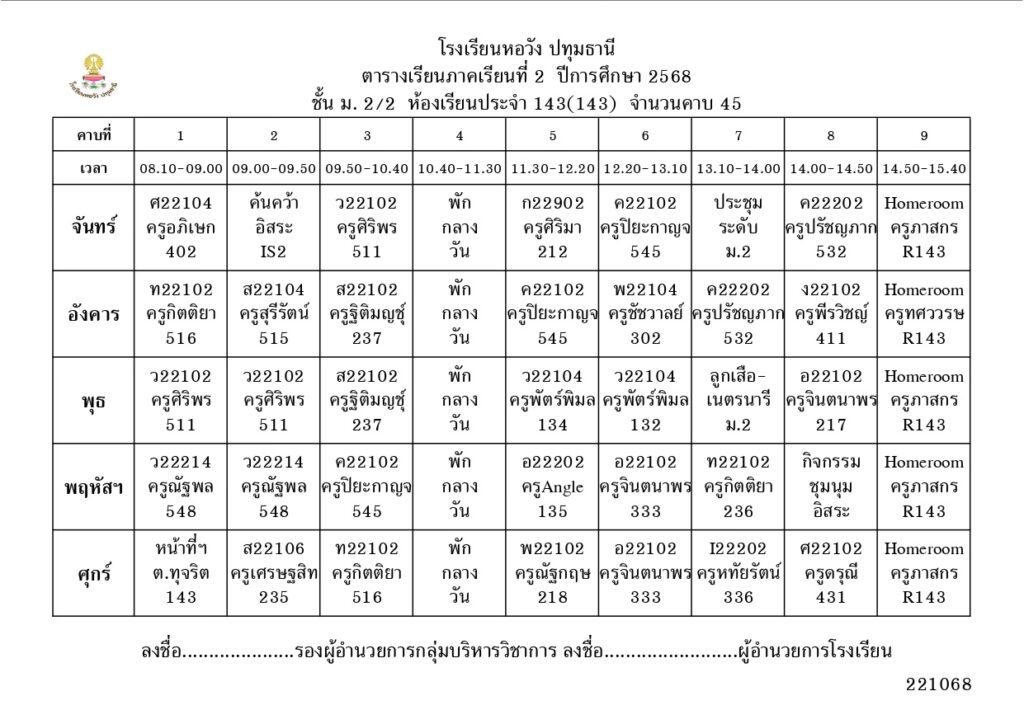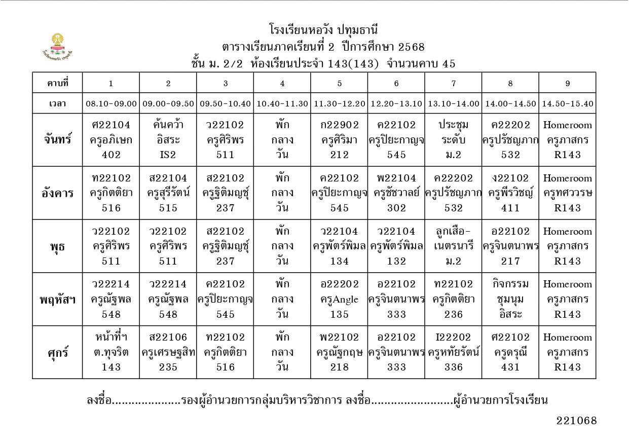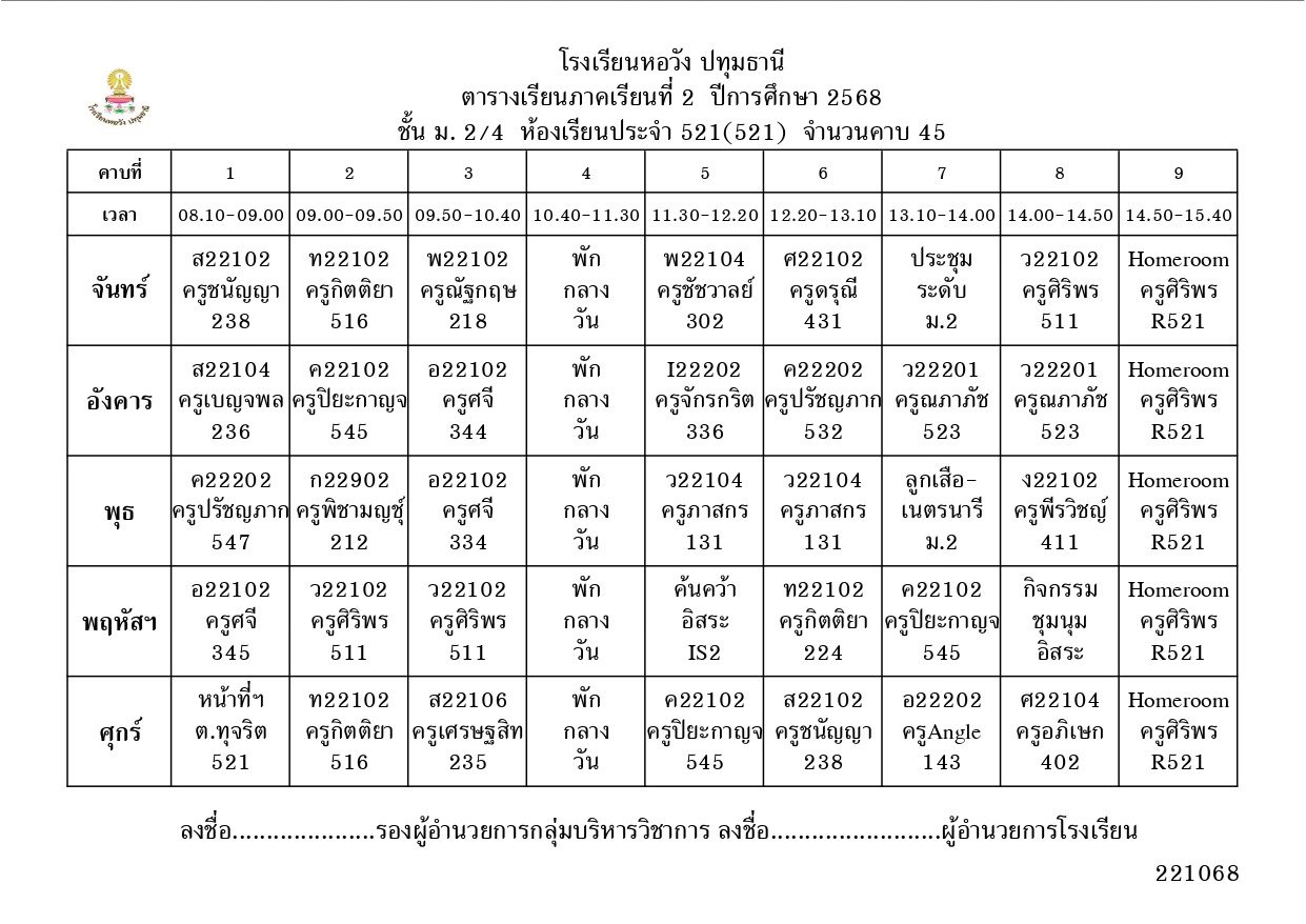 ภาคเรียนที่ 2 ปีการศึกษา 2568