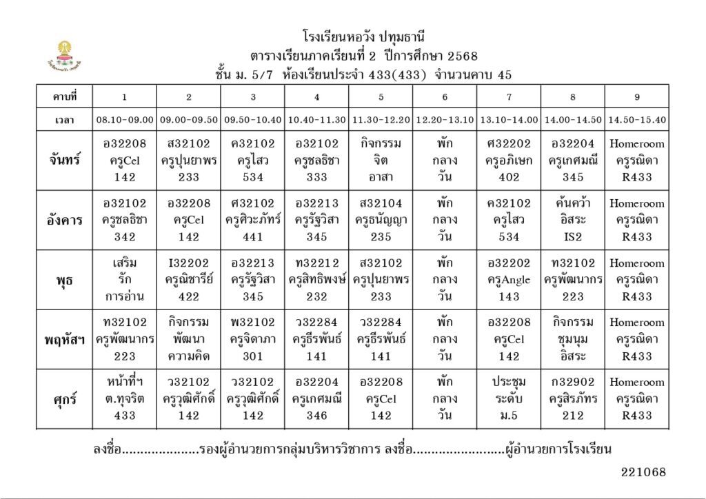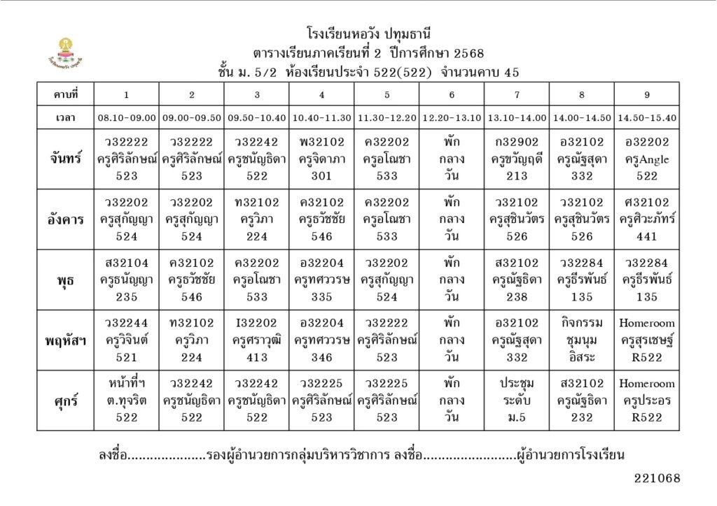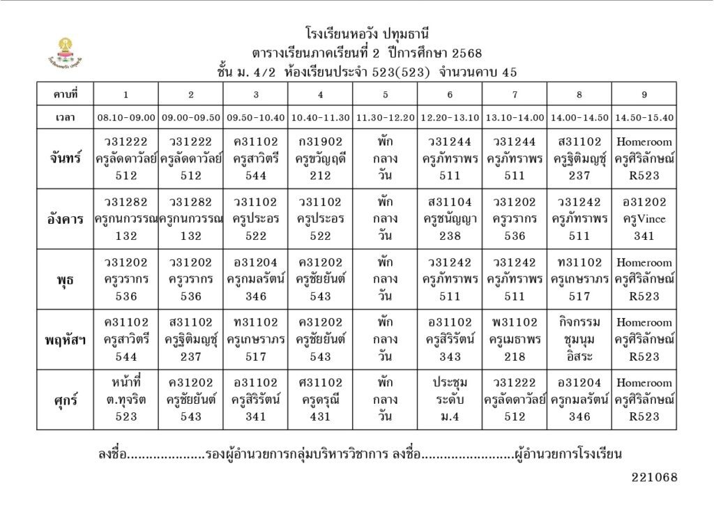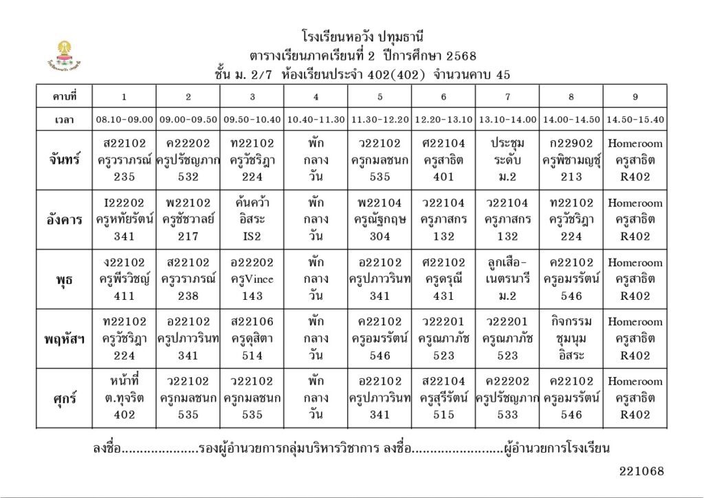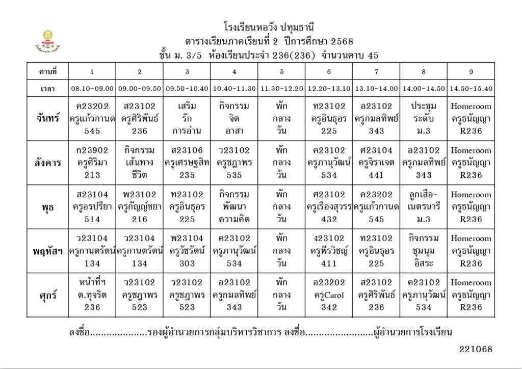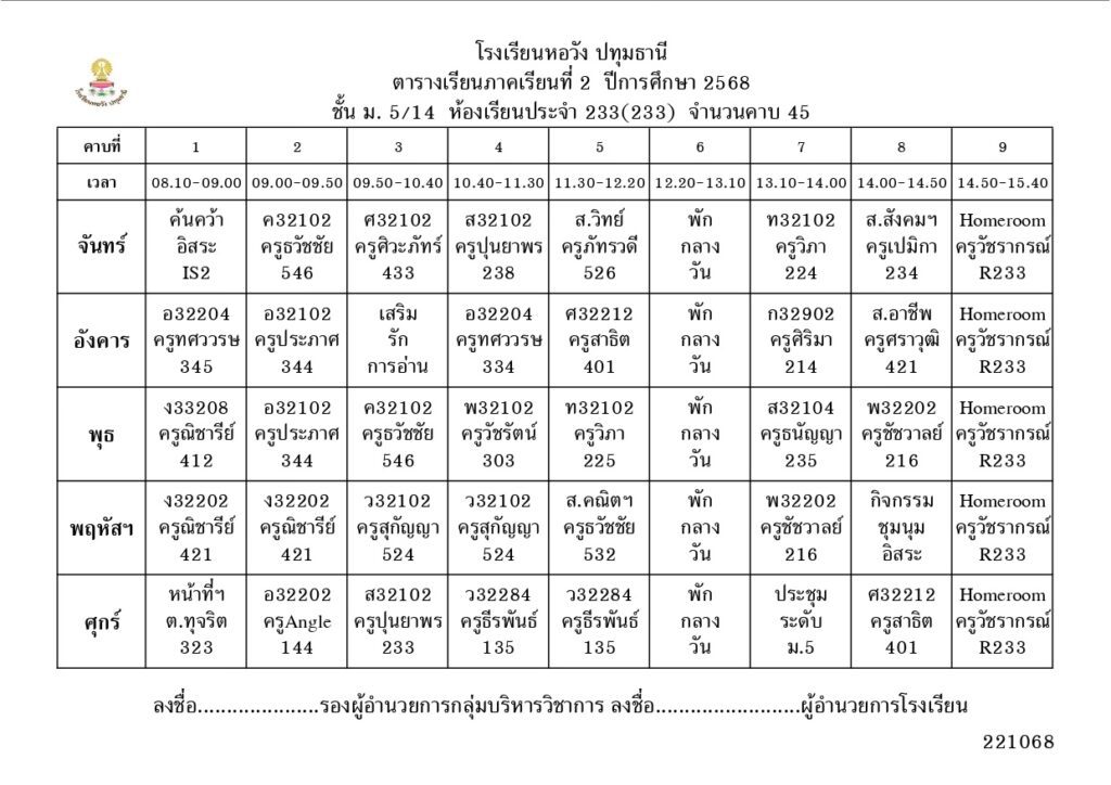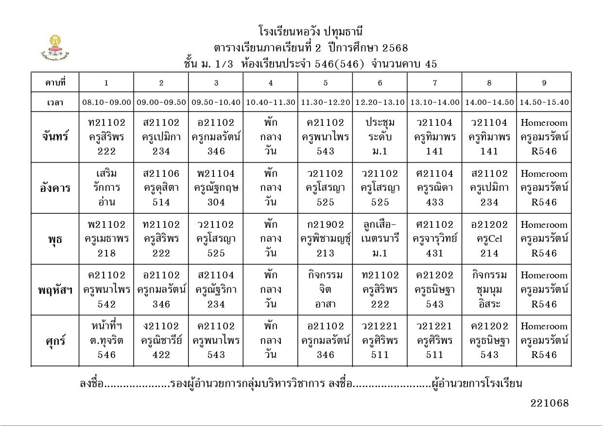 ภาคเรียนที่ 2 ปีการศึกษา 2568