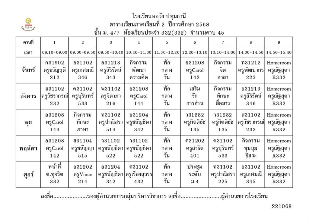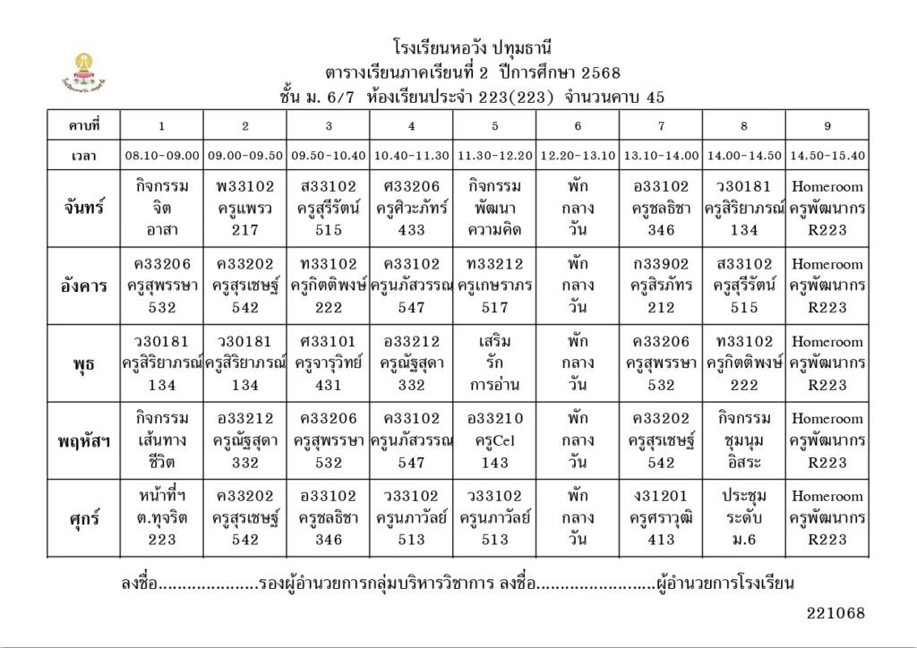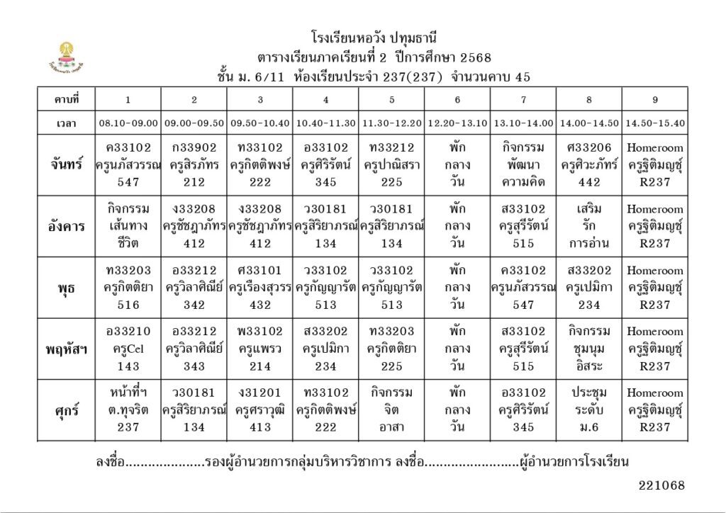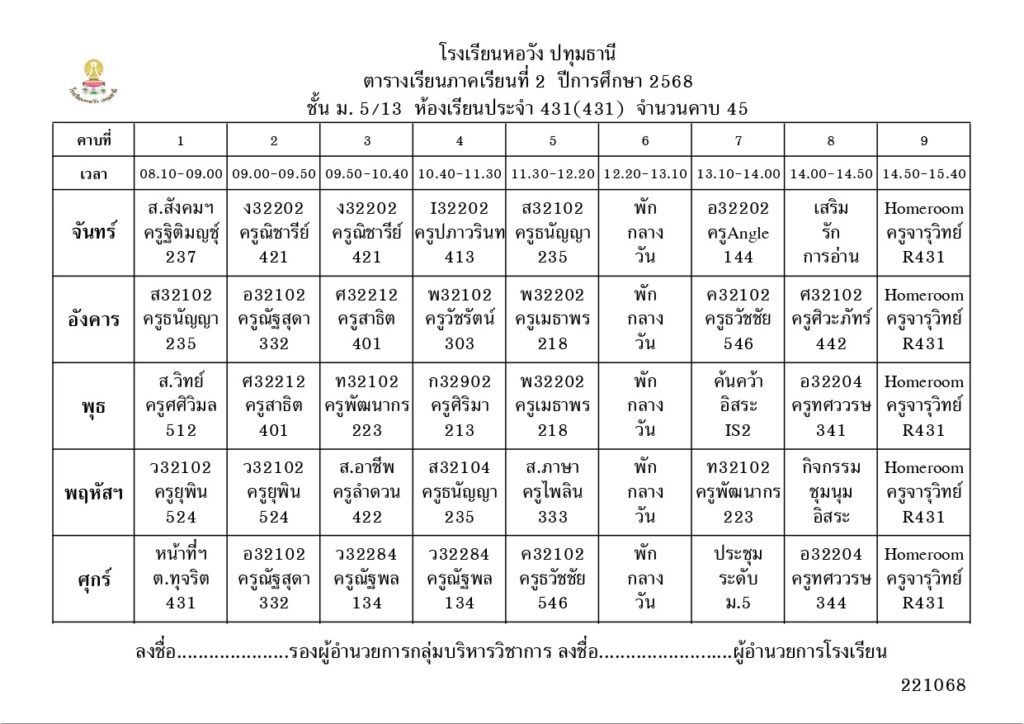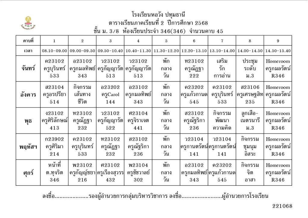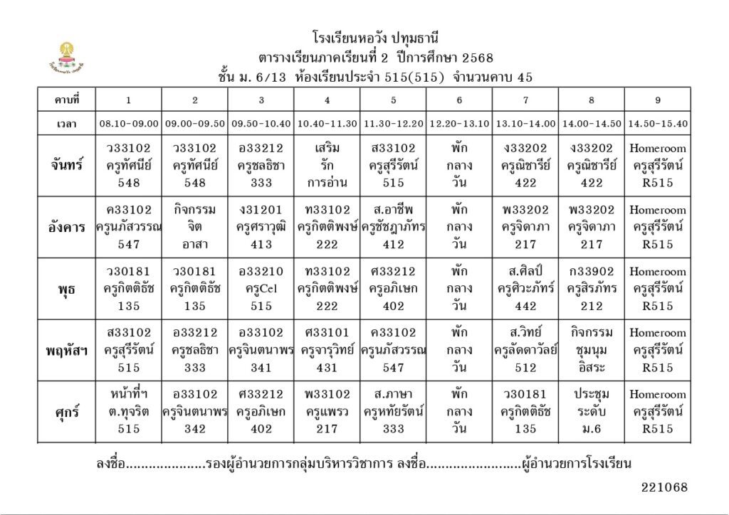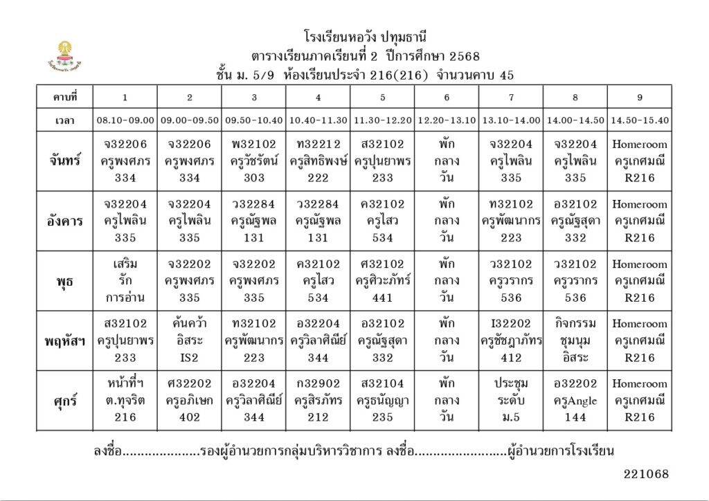 ภาคเรียนที่ 2 ปีการศึกษา 2568